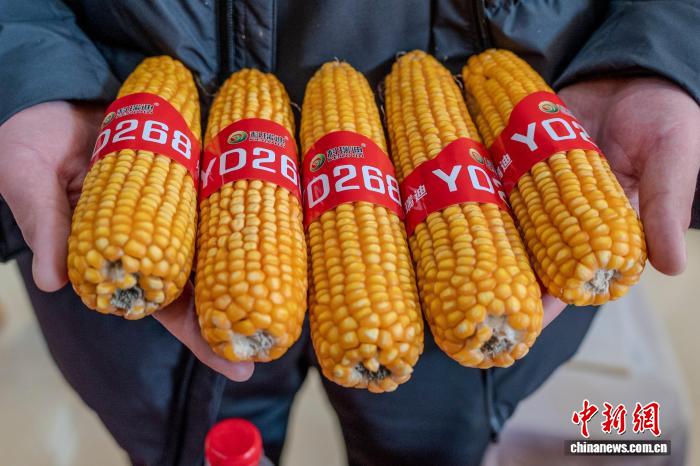 1月6日,河北农业年夜教农教院第9届弘农科技文明节现场,该校科研团队培养的冲破性玉米新种类YD268成为核心。浩繁教死排起少龙,积极支付样本,好像1场“逃星”举动。图为任务职员呈现玉米新种类YD268。中新社记者 李超庆 摄